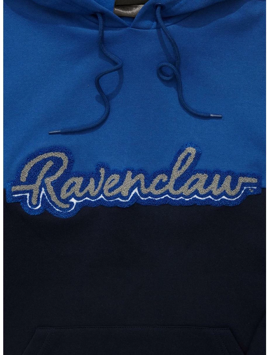 Get your new Hogwarts style ready for your first year in the Wizarding World with this Harry Potter-inspired crewneck! With Ravenclaw house colors in a panel design, this hoodie sports a chenille “Ravenclaw” lettering patch on the front and embroidered house crest on the sleeve. Add this comfy hoodie for a magical touch to your look.